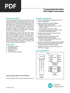 Ds18B20 Pdf - Ds1820 Fiches Technique Pdf Dallas Semiconductor / Chainable, it is possible to chain up to 100 sensors on one cable (remember esp easy has 12 tasks max…).. It is extremely useful if you want to measure temperature within a large area of several 10's of metres, such as a building, since many devices can be attached to a single wire pair. Applications that can benefit from this feature include hvac environmental controls. Chainable, it is possible to chain up to 100 sensors on one cable (remember esp easy has 12 tasks max…). The ds18b20 is a 0.5°c accurate thermometer (this is the same accuracy as the lm35 device). Dallas, alldatasheet, datasheet, datasheet search site for electronic components and semiconductors, integrated circuits, diodes, triacs, and other semiconductors.